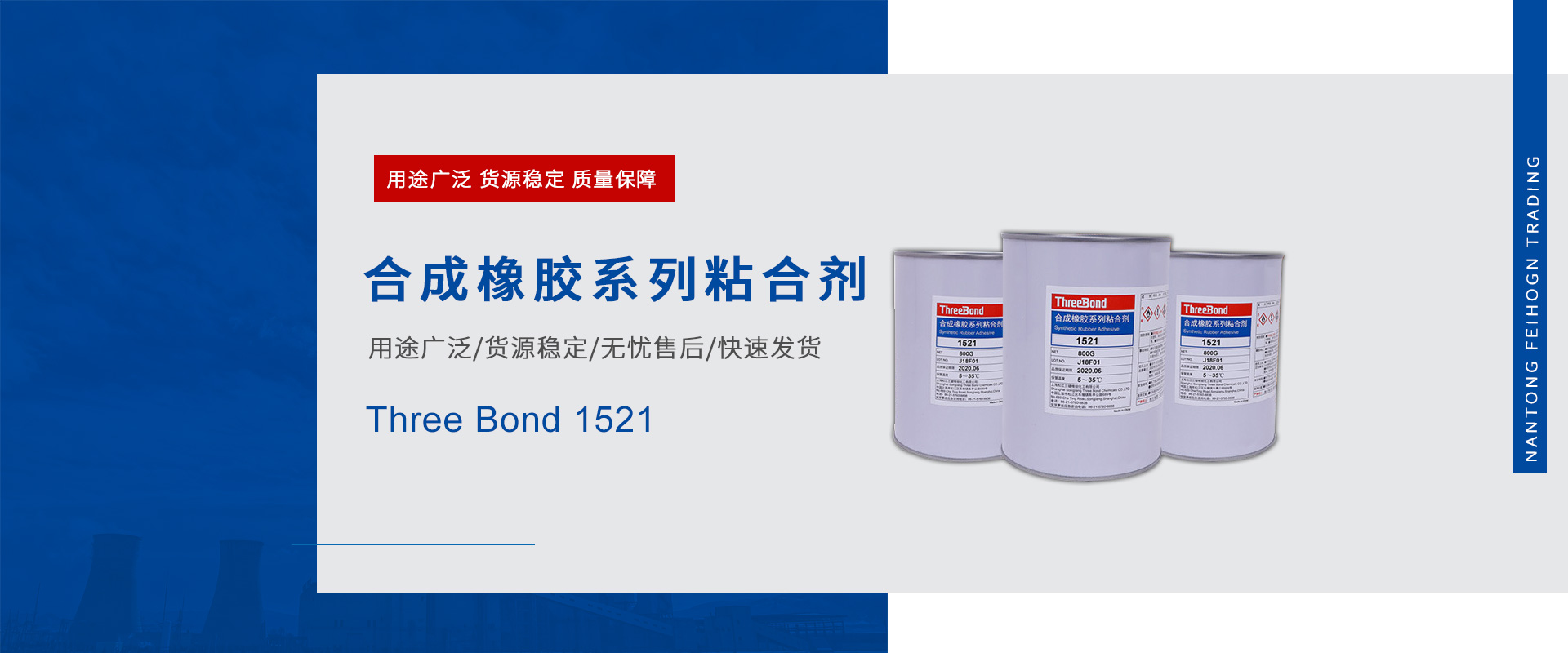 南通飛鴻商貿專營各大品牌膠粘劑,密封劑。主營樂泰、波士、天山、三鍵、富樂以及3M等知名品牌,為客戶提供多樣的服務、專業(yè)的技術支持和系統(tǒng)解決方案在江蘇地區(qū)經(jīng)營各類工業(yè)產(chǎn)品,其經(jīng)營范圍包括:螺紋鎖固密封膠系列,結構粘接及平面密封膠系列,圓柱固持系列,金屬修補系列,耐磨耐腐蝕系列,表面清洗及銹蝕處理系列,地面防滑及修補系列,橡膠粘接及皮帶修補系列,減摩涂層及定位灌封系列,緊急修補系列,高溫密封修補系列,抗咬合潤滑劑系列,羅哥潤滑油系列等等,主要服務于汽車,工程機械,軌道交通,新能源,電子電器,船舶,冶金,航空航天,電力,醫(yī)療等諸多行業(yè)!